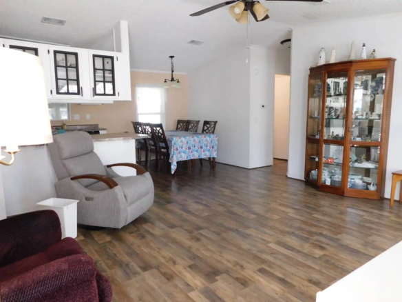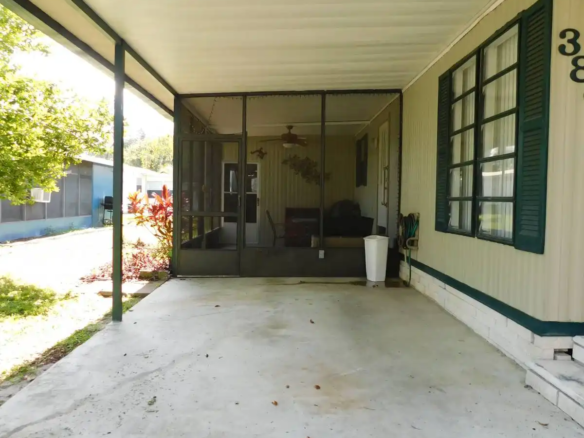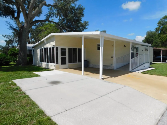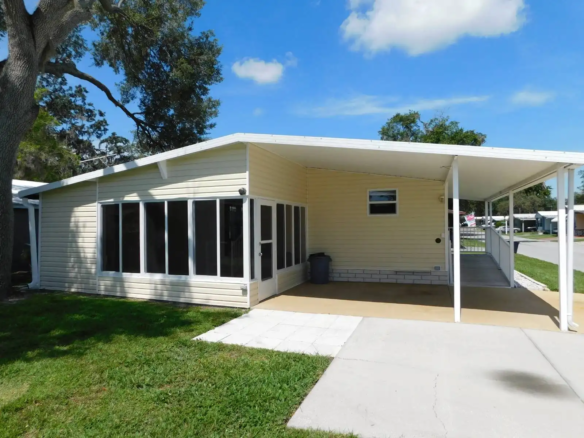 Step into comfort with this spacious and bright 2-bed, 2-bath 1998 Fleetwood Oaknoll home offering 960 sq. ft. of living space. With a thoughtful layout and plenty of storage, this home is designed for easy living. This home flows beautifully with a flowing floorplan: from the dining area to the kitchen, through to the laundry room with duel access to both the second bathroom and private screen room. The master suite has a spacious walk-in closet and a large bathroom featuring a stand-up shower with seats. Highlights include: an extra-large lot with a completely secluded back screen room—perfect for relaxing or entertaining, all appliances have been replaced within the past 4 years, there is an extra-tall carport designed to accommodate large vehicles, newer HVAC system that is just 3 years old, and there is bright and airy feel with 2 skylights bringing in natural light. With its roomy design and unbeatable outdoor privacy, this home has everything you need to feel right at home. Don’t miss your chance, schedule a showing today!