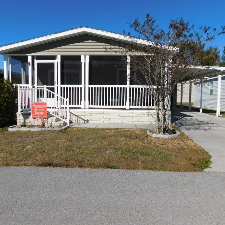 Welcome to this well-maintained 2014 Jacobsen home offering 1,248 sq. ft. (52' x 24') of comfortable living in a desirable 55+ community-just steps from the community amenities! This 2-bedroom, 2-bathroom home features a spacious open floor plan perfect for both everyday living and entertaining. The beautiful kitchen is a standout, complete with an island, abundant counter space, and plenty of cabinets for storage. The primary suite offers a peaceful retreat with an en-suite bathroom featuring his and hers sinks and a very large walk-in closet. Enjoy recent updates including a fresh coat of interior paint in most of the rooms that will fit any décor, completed in January 2026 and upgraded laminate flooring in the living room and hallway. Relax and soak in the Florida lifestyle on the 10' x 24' screened front porch, ideal for morning coffee or evening breezes. Additional features include an extra-large storage shed for all your extras. The home is partially furnished, with all appliances including a brand new washer and a dryer that is less than 2 months old, making your move even easier. This home truly combines comfort, style, and convenience-perfect for enjoying relaxed Florida living. Schedule your showing today!