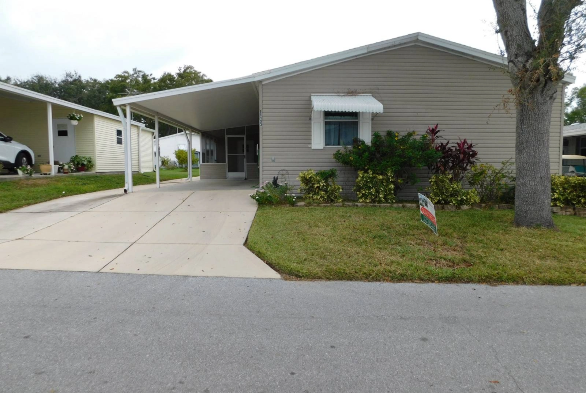 Welcome Home to Comfort and Convenience! This immaculate 2000 Palm Harbor home offers 3 bedrooms, 2 bathrooms, and an impressive 1,680 sq. ft. of thoughtfully designed living space with a split-floor plan for added privacy. From the moment you step into the spacious 9' x 17' entry foyer, you'll feel right at home. This welcoming space includes a laundry area with mud sink, a storage closet, an extra refrigerator, and a built-in desk-perfect for staying organized with ease. To the right, a bright and open kitchen awaits, featuring a center island, abundant cabinetry, and generous counter space. The adjacent dining room provides ample room for hosting family and friends, while the spacious living room includes a built-in entertainment center for relaxed evenings in. The master suite is generously sized and includes a walk-in closet and a private en suite bathroom with a garden tub, stand-up shower, and bidet-designed with comfort in mind. On the opposite side of the home, two additional bedrooms offer flexibility for guests or hobbies, and the guest bathroom includes a 16" toilet with bidet for enhanced accessibility. Enjoy Florida living in the screened room and take advantage of the oversized two-room shed-ideal for storage or projects. The wide driveway offers easy parking, plus a separate golf cart path leads to the shed's double doors for convenient indoor golf cart storage. Additional features include all appliances and a newer shingle roof installed in December 2019. This move-in ready home truly checks all the boxes and is ready to welcome you to your next chapter!